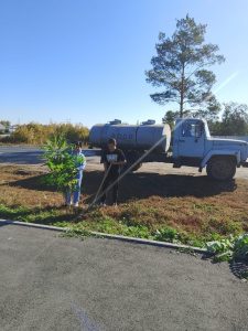 Было высажены около 30 саженцев разнообразных деревьев и кустарников, которые предоставили жители близлежащих домов.