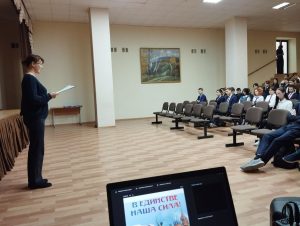 В рамках партийного проекта «Культура малой родины» ВПП «ЕДИНАЯ РОССИЯ» сотрудники библиотеки №4 микрорайона «Северный» провели познавательное мероприятие посвященное Дню народного единства для обучающихся МАОУ «ОЦ №3 «Созвездие» г.Вольска» (к.2). Интерактивный атлас «Открывая Россию: вместе мы сможем многое!» стал увлекательным способом погрузиться в многообразие культурного, исторического и социального наследия нашей страны. С помощью медиапрезентации «Бескрайняя Россия» школьники совершили виртуальное путешествие от Камчатки до Калининграда. Они прошли по маршруту Великого Шелкового пути, узнали тайны озера Байкал, «покорили» вершины Кавказа и познакомились с достопримечательностями российских исторических городов. Ведущие рассказали ребятам о танцах, песнях, традиционных забавах, а также о народных ремеслах и техниках прикладного искусства, которыми славятся различные регионы России. В завершение мероприятия юные участники активно отвечали на вопросы этновикторины «Многоликая страна», продемонстрировав свою эрудицию и знание культуры народов России. «Интерактивный атлас стал ярким и запоминающимся событием, напомнив участникам о богатстве и разнообразии культурного наследия России, а также о важности единства и дружбы между народами, населяющими нашу страну» — отметила Ольга Скачкова, сторонник партии «ЕДИНАЯ РОССИЯ», библиотекарь.